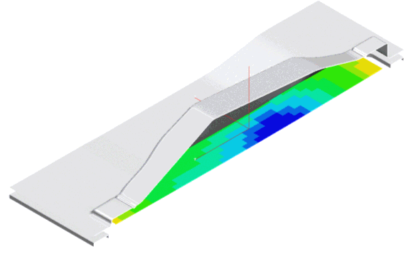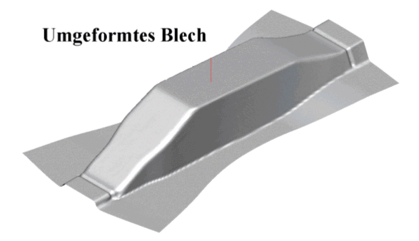 Anschließend an die Simulation wird die Schnittkontur wird auf die umgeformte Platine projiziert. Diese projizierte Schnittkontur wird bis auf die ebene Platine abgewickelt.
