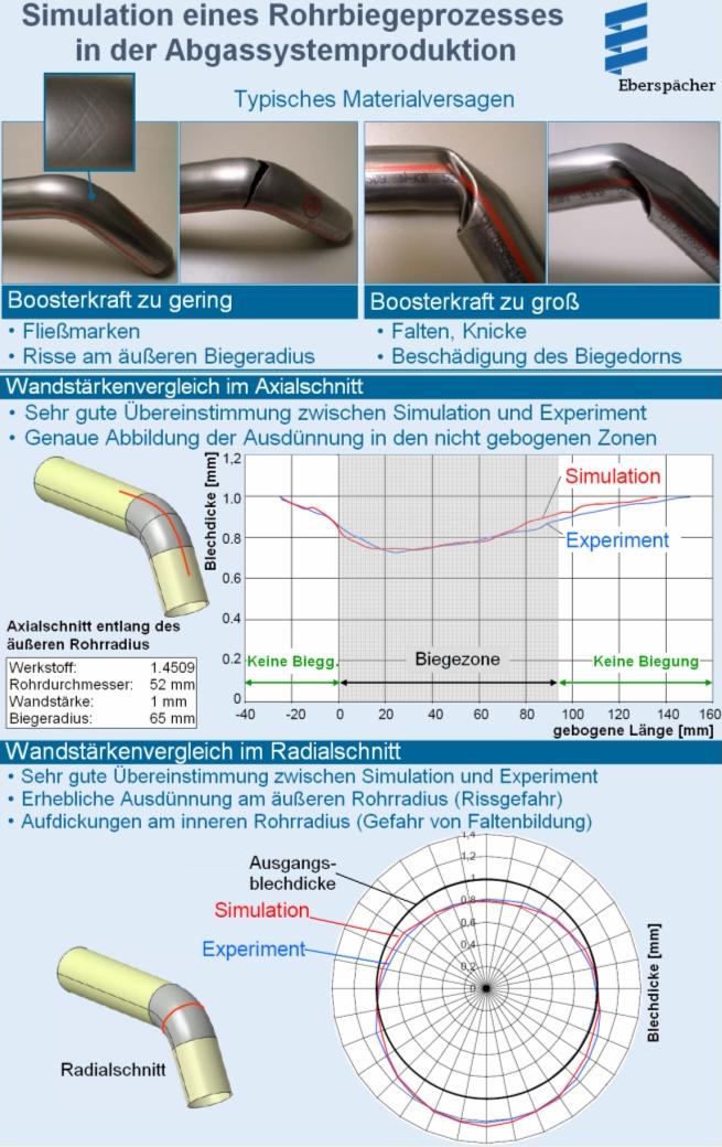 Ergebnisse aus dem realem Biegevorgang und der Simulation verglichen.